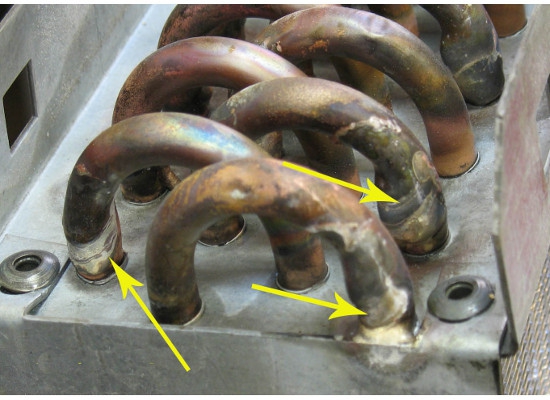 Наиболее частая причина выхода из строя – «разморозка» из-за расширения при застывании не слитой вовремя воды. Ремонта требуют медные U-образные детали теплообменника и прямолинейные участкитрубок.